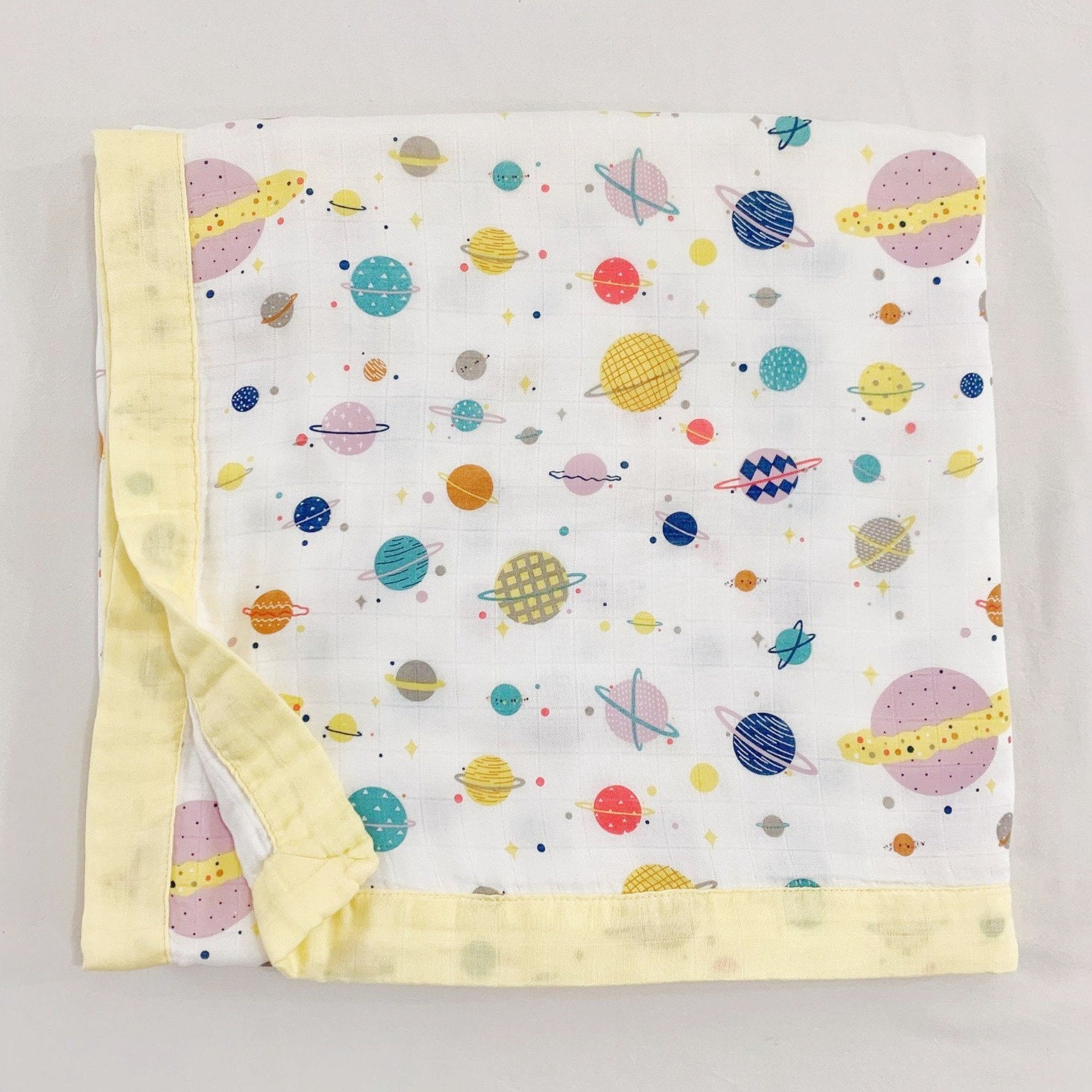 Our blankets are comprised of four layers of muslin cloth which has a light and open weave that helps to regulate body temperature, keeping babies and toddlers snug without overheating. Just perfect for a toddler bed or for trips out and about!